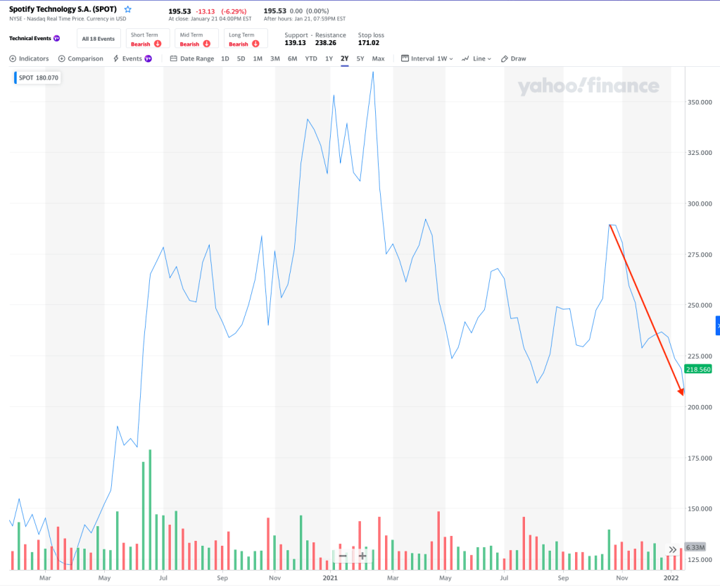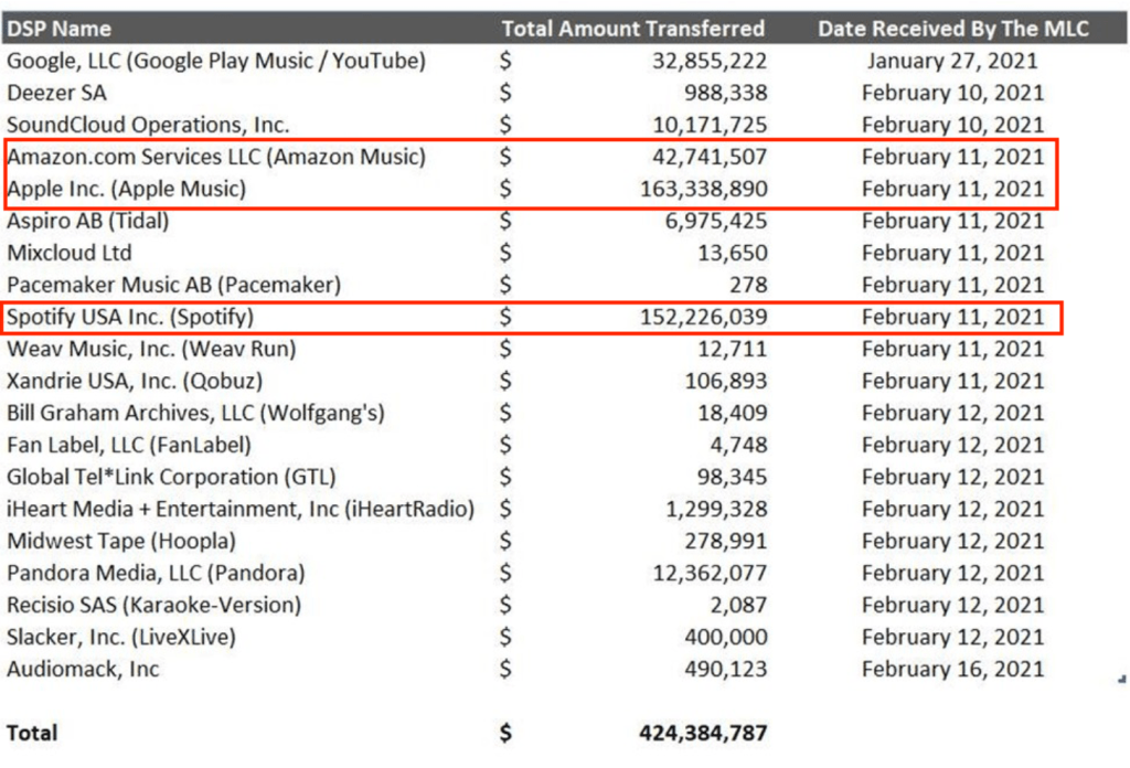 Remember that the “big pool” method allocates a “pie” which is roughly 50ish% of a defined revenue pool calculated each month for the sound recording and about 14ish% of a slightly different revenue pool for the song. Those two “pies” are then divided up based on market share or said another way, popularity. I say “defined revenue” because it is a negotiated number, not all revenue. Want to bet that defined revenue is less than actual revenue? Sure as there’s gambling at Rick’s. So there’s nothing inherent in the pie, and if you wanted to bet that share price and market valuation is not included in that defined revenue, you’d be a winner.
